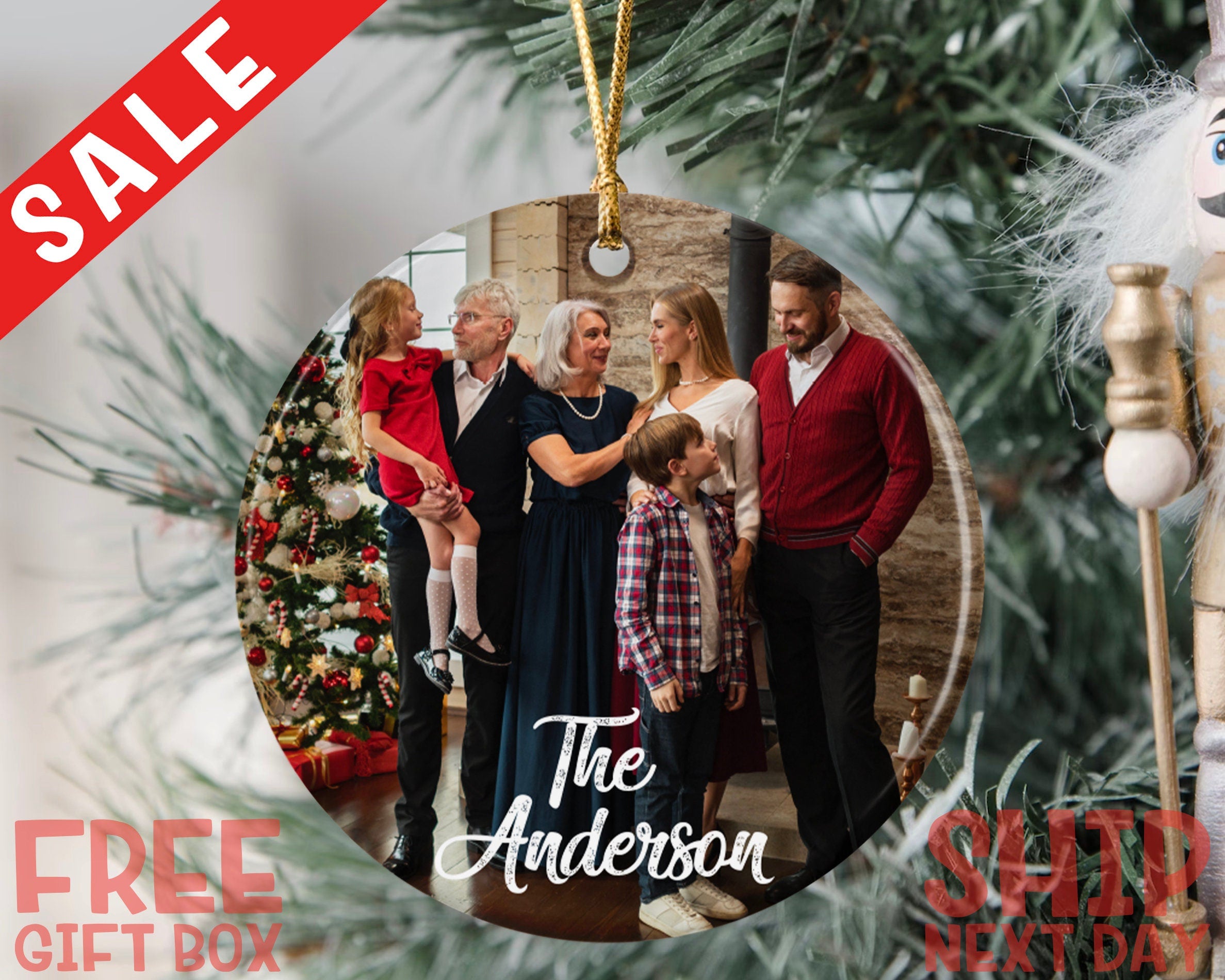 Custom Christmas Family Ornament, Christmas Gift, Photo Ornament, Grandparents Gifts, Christmas Memorial Ornament, Ceramic Picture Ornament