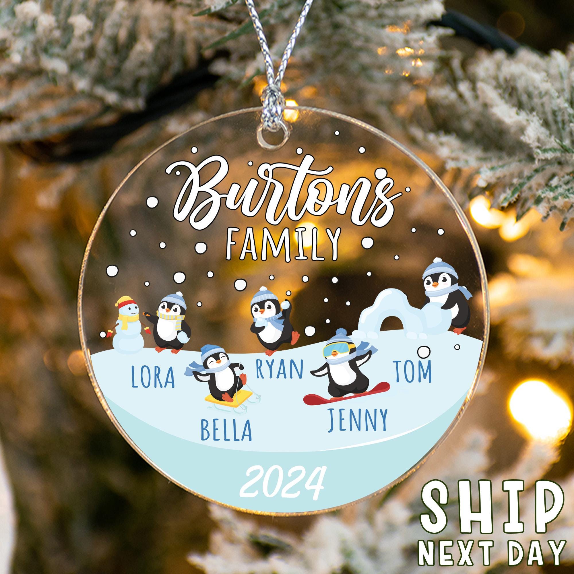 Custom Family Name Ornament, Penguin Family Ornament, Personalized Family 2024 Ornament, Christmas Tree Ornament, Christmas Decorations